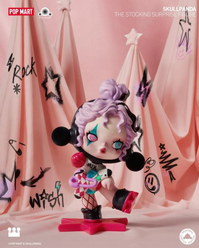 ?SKULLPANDA limited edition series is a unique collectible item. This series is exclusive to Japan, featuring a plush doll pendant. The design is inspired by the skullpanda, with a gray fur and red eyes. The doll is adorned with a chain and a scarf. It's a must-have for collectors and fans of the skullpanda series.